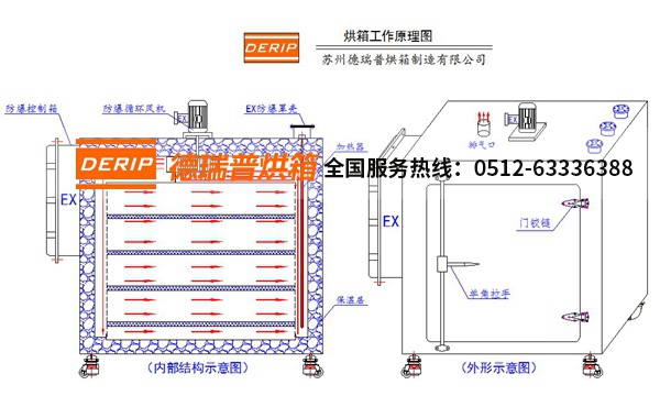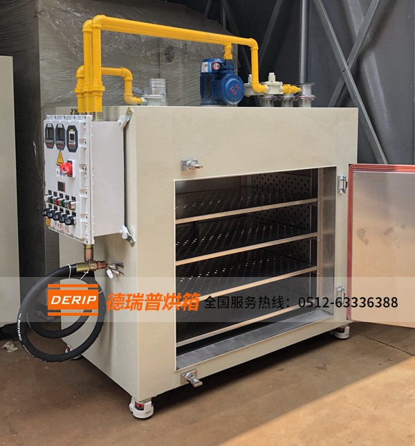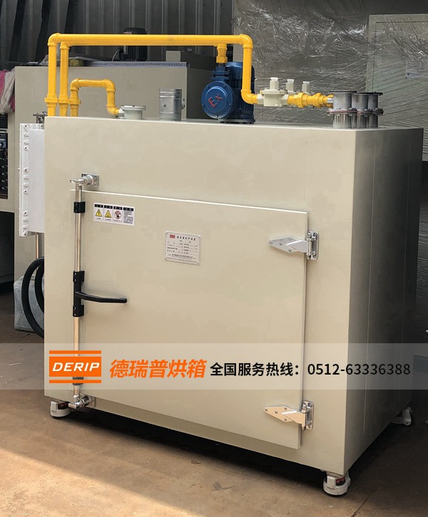 該產(chǎn)品廣泛應(yīng)用于變壓器制造浸漬后的烘干工藝,或作油漆涂層表面的干燥處理及一般物品的干燥、烘焙、熱處理、消毒、保溫等。該烘箱設(shè)有廢氣排出接口,便于廢氣的排放,采用密封式電加熱器和防爆鼓風(fēng)電機(jī),箱后設(shè)置防爆門,能有效地起到防爆作用,保護(hù)設(shè)備及人員安全。